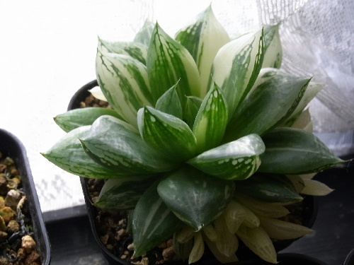 ハオルシア 宝草錦 ハオルシア Twitter Facebook はてブ Pocket LINE コピー 2023.01.26 2022.02.11 2022年12月18日現在 春から秋にかけて屋外(軒下)で管理 2022年2月6日現在 フリマサイトで購入 2022年2月11日現在 LED植物育成ライト(GREENSINDOOR 600W相当)で管理中